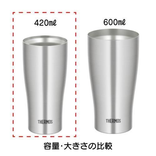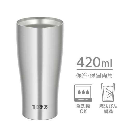 このサーモスの真空断熱タンブラーは、ステンレス素材で作られており、420mlの容量があります。軽量ながらも丈夫な作りで、持ち運びにも便利です。 食洗機対応モデルです。