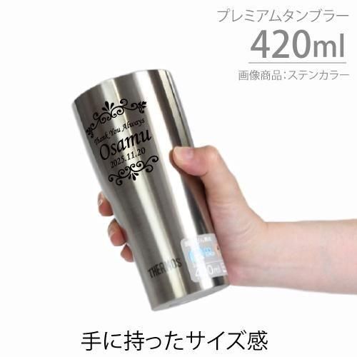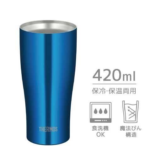 このサーモスの真空断熱タンブラーは、ステンレス素材で作られており、420mlの容量があります。軽量ながらも丈夫な作りで、持ち運びにも便利です。 食洗機対応モデルです。